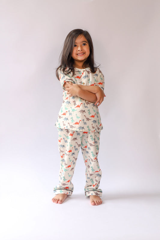 Unisex Kids Pajama Set - Dinosaur Print Neutral Colors