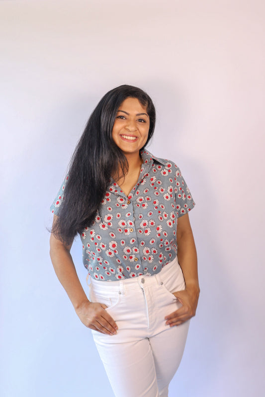 Short Sleeve Block Print Shirt - Daisy
