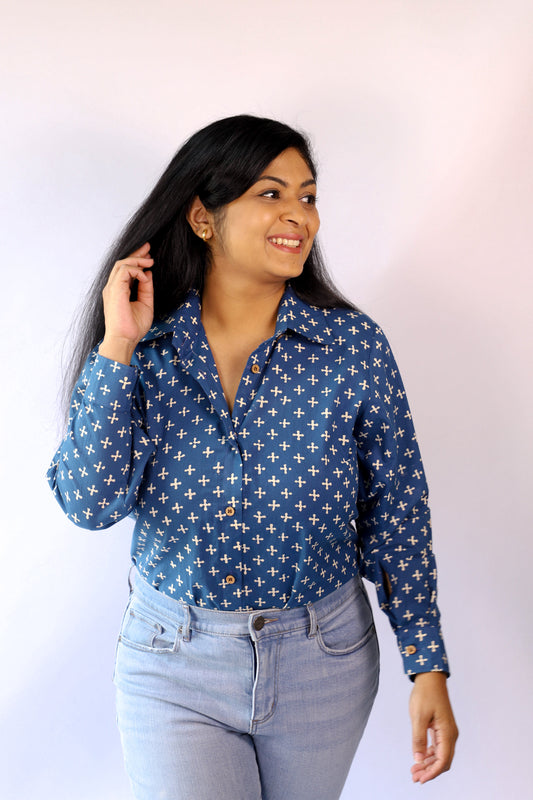 Full Sleeve Indigo Shirt - White Cross